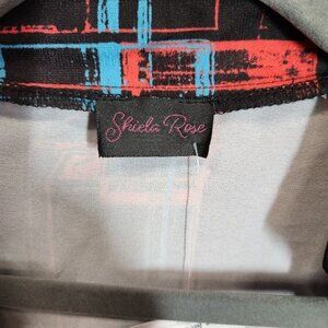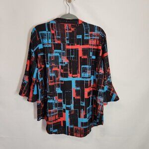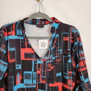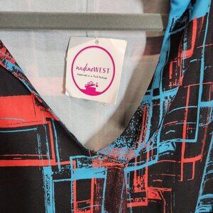 NWT Shiela Rose 3/4 bell sleeve black with red and blue square pattern - Size L