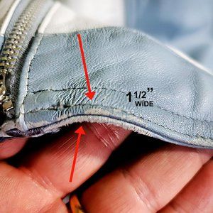 No, the edge wear is on the bottom hem (right side). It's only about 1.5 inches wide and only on the bottom side of the hem. The jacket was purchased new and never worn, so I'm guessing its due to storage or was there and we didnt see it when purchased. Hope that helps...