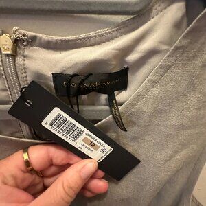 Donna Karan New York sleeveless button-front midi dress, size 12. Neutral gray tone, classic and versatile. Brand new with tags, MSRP $365.