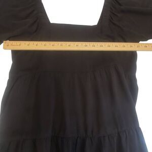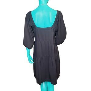 Brand new with tags! This gorgeous black dress by Shine Star has Wednesday vibes. It features a flattering square neckline, puff sleeves, and a flowy tiered silhouette that offers both comfort and style. Made from soft, breathable 100% rayon, it's