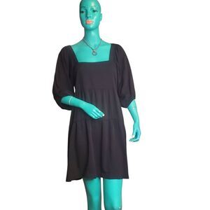 NWT Shine Star Women's Black Puff Sleeve Square Neck Dress Size Large 1O0% Rayon