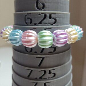 Super cute, super shiny, super unique! This dinner mint stretch bracelet is named as such because they remind us of those pastel dinner mints you see at restaurants. A Chill Charms Exclusive! The size is nearly 7 inches. Made of plastic but does not look cheap. Same day shipping. Made in Texas! Limited edition, limited supply.