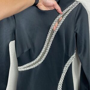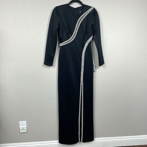 NWT Sho Tadashi Shoji Janae Imitation Pearl Crystal Long Sleeve Sheath Gown Sz 2