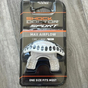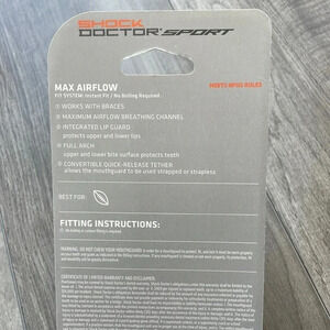 Shock Doctor Max Airflow Lip guard, One Size Fits All, White: • SPORT FIT: Specialty models best used with certain sports • Maximum Airflow breathing channel - 10% larger than all Lip Guards • Low profile integral bite pads add comfort • Works with braces • Quick release tether allows the lip guard to be used strapped or strapless • Meets national and state high school rules • Latex, BPA, and phthalate Free
