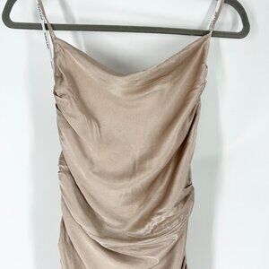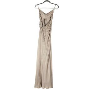 NWT Shona Joy La Lune Ruched Backless Slip Maxi Dress in Gold