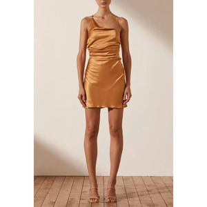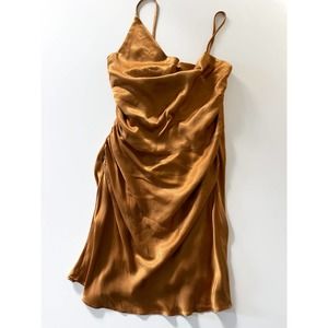 NWT Shona Joy x Free People Alma Asymmetrical Bias Cowl Mini Dress in Turmeric Size US 8