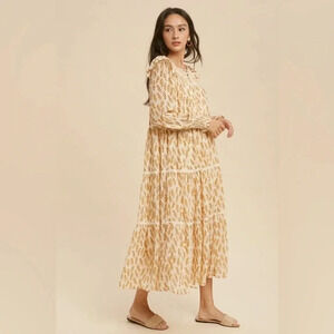 NWT Shop Stevie Long Sleeve Tiered Flowy Maxi Dress