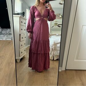 NWT Shore Shop Pink Plunge Neck Smocked Sundress Cutout Long Sleeve Size Small