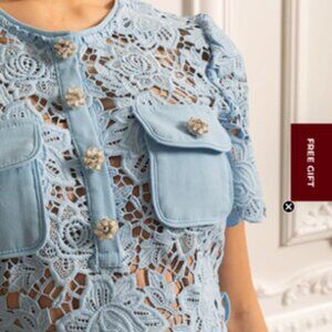 Brand New with Tags Blue Short Sleeve Embroidered Floral Dress