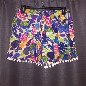 Multi-colored floral print shorts with adorable Pom-Pom detail. Never been worn!