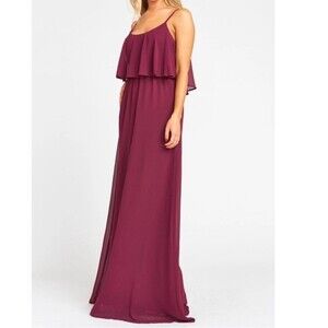 NWT Show Me Your Mumu Caitlin Ruffle Maxi Dress Merlot Chiffon Size XS