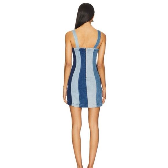 Brand new with tags Show Me Your Mumu Coronado Corset Dress in the Shady Indigo Stripe wash. This chic mini features wide vertical denim panels, a structured corset bodice, and removable adjustable straps so you can wear it strapless or with added support.