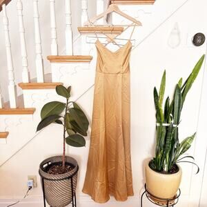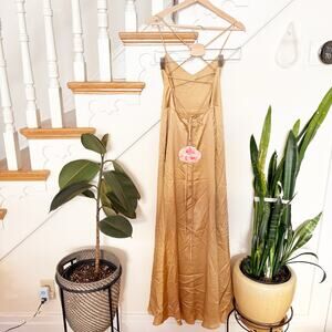 NWT Show Me Your Mumu Godshaw Goddess Gown Gold Satin Maxi Dress Size S Small