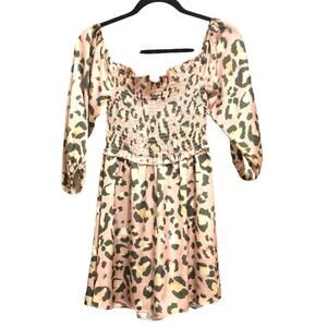 NWT Show Me Your Mumu Smocked Kiera Silky Cheetah Print Mini Dress