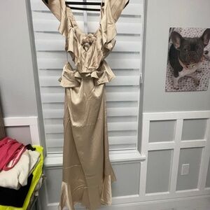 NWT Show me your Mumu Zoey Midi Dress in Champagne Luxe Satin Size L