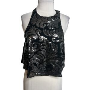 Strut your stuff across the dance floor and have all eyes on you in this sequined crop top that is sure to catch everyone's attention. Fit: this style runs one size large. - Crew neck - Sleeveless - Buttoned back keyhole - Sequined construction - Lined - Approx. 18" length (size S) - Made in USA