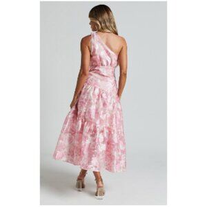 NWT Showpo. Lettie Midi Dress One Shoulder Tiered Blurred Rose Women's 10 Medium