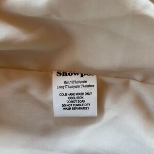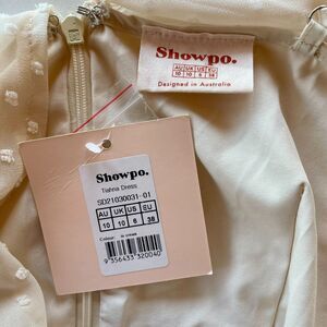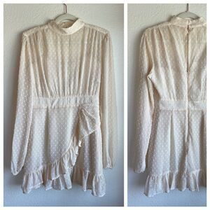 NWT Showpo. Tiahna Long Sleeve High Neck Ruffle Swiss Dot Dress in Cream Size 6