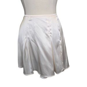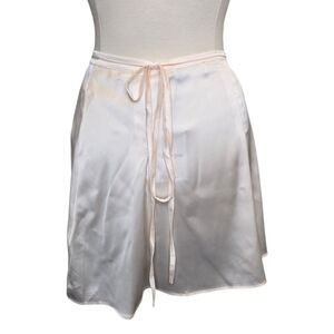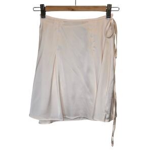 NWT Showpo. Women's US 4 Jamilla Tie Waist Mini Skirt Ivory. Self-fastening waist ties. Wrap front. High rise waist. Satin finish. No lining. 97% polyester / 3% spandex. This listing is for the skirt only.