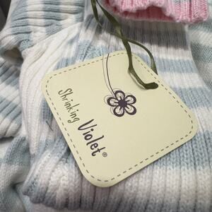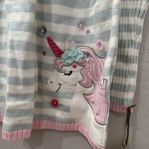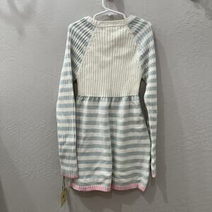 Shrinking Violet sweater dress size 7-8. Light blue and cream stripe sweater dress with appliqué unicorn on front. So cute! New with tag (NWT).