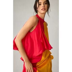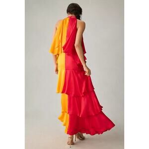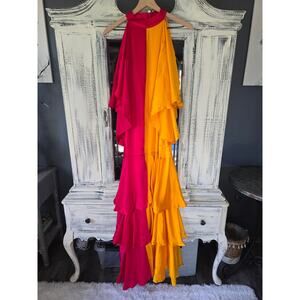 NWT Shruti Sancheti Mock-Neck Colorblock Ruffle Dress - Medium