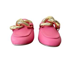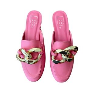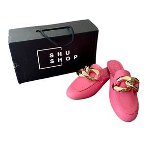 NWT ShuShop Alexis mule loafer faux leather gold chain original box 6 coral