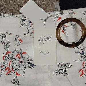 Shorts / Pantalones have a $450 tag attached to them. I'm not super familiar with this brand, but these shorts are lovely and lightweight. Hidden side zip with pull on waist. Squared long front pockets, no back pockets, adjustable matching belt, faux cuff. Great to dress up or down. Material is 100% Polyester.