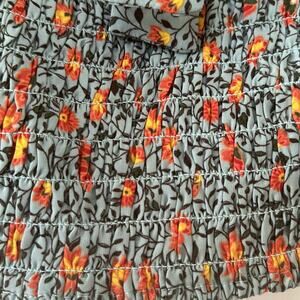 NWT Sienna Sky Dusty Blue Orange Floral Fall Crop Top, Elbow Puff Sleeve, Size S