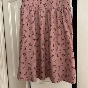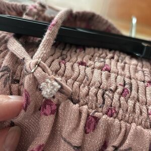 Adjustable straps. Please see pictures of raw fabric on straps. Elasticized back. Dress fabric is rayon and linen. Lining in bust area is polyester and cotton. Pit to pit measure is 16 inches, unstretched.