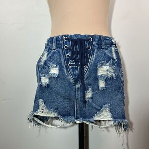 NWT Signature 8 distressed denim Jean mini skirt size XS. 100% cotton