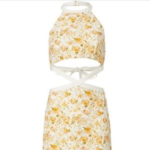 Significant Other Ari Cutout Rosalie Floral Mini Dress. Beautiful quality and absolutely gorgeous print! 55% linen 45% viscose. Invisible back zipper and large hook and loop at back of neck.