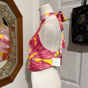 NWT Sigrid Olsen Pink & Yellow Satin Sleeveless Tie Back Cropped Halter Top S