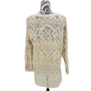 NWT Sigrid Olsen Signature Beige Sheer Tunic Long Sleeve Boho Resort Blouse, L