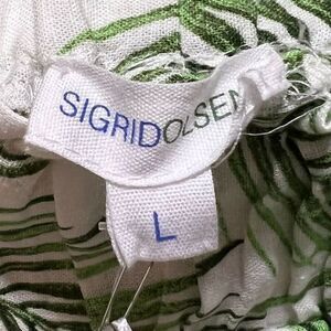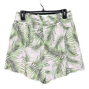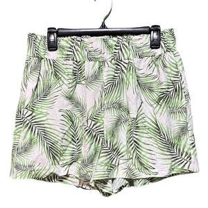 NWT Sigrid Olson Shorts Pull On Elastic Waist Linen Blend Green White Leaf Large