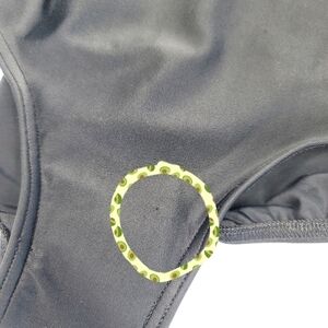 Black and white tropical floral with ruching style top half. Back has a deep u-shape cut out. Swimsuit does have padded bra.