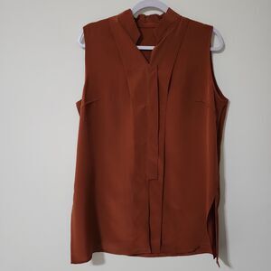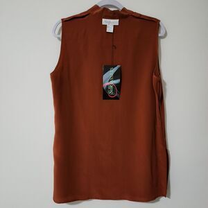 NWT Silk Assets Diane Von Furstenberg Sleeveless Tunic Blouse Brown DVF Size M