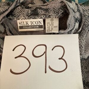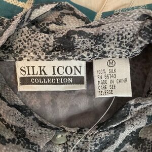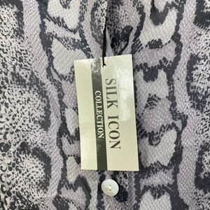 NWT Silk Icon Shirt Womens Sz M Gray Snake Print Button Up Short Sleeve