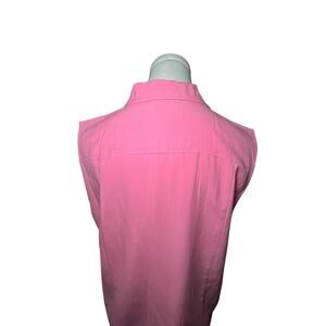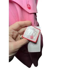 This is a NWT Silk Incounter Bubblegum Pink/with a coral hue to it sleeveless button down shirt. Perfect for layering, wearing with a blazer for office, casual. Nights weekends etc. Timeless, luxury, classic, modern and traditional. It is washable as well.