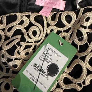 NWT! Silk Lilly Pulitzer Black and Gold Mini Pleated Strapless Dress