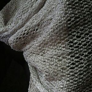 Very stretchy silver crochet with metallic silver thread ascented throughout. Beautiful!