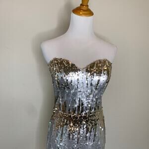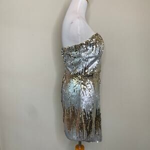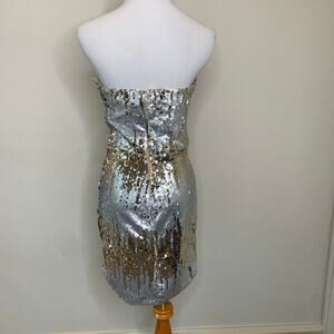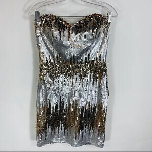 NWT Silver Gold Sequin Strapless Mini Dress Medium Cocktail
