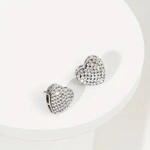 ⭐NWT Silver Heart Rhinestone Studs