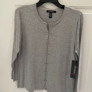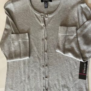 NEW Silver metallic cardigan sweater with rhinestone buttons