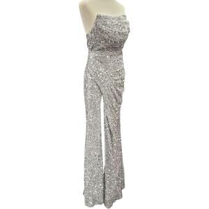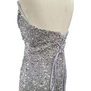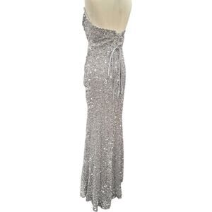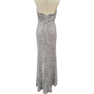 NWT Silver Strapless Sequin Evening Gown with Corset Back on Velvet Fabric
