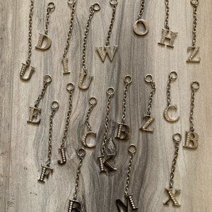 NWT Silver-colored (X), rhinestone studded initial Bag Charm