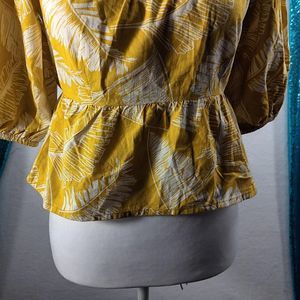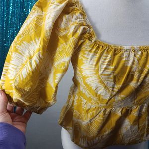 The off the shoulder neckline and puff sleeve type give it a bohemian and tropical theme, perfect for a summer vacation. This cropped blouse comes in size S, with a regular fit and size type. It's a must-have addition to any wardrobe, and it's sure to make you feel confident and stylish.
