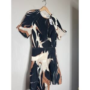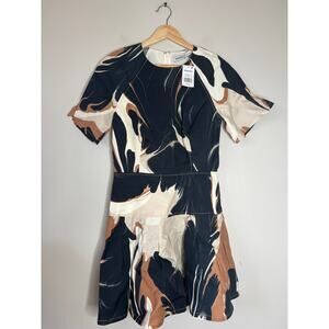 NWT Simkhai Covey Linen Pleated Skirt Side Pocket Mini Dress Multi Color Size: 2