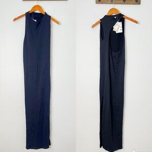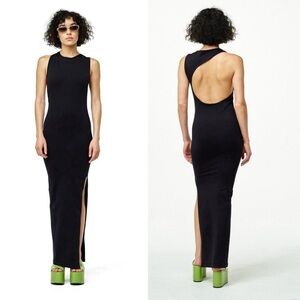 Stretch seamless tank dress from Simon Miller with a geometric back cut out and mid side slit. Made from a tubular seamless knit fabric, this dress has no seams and offers a perfect, body-con feel.