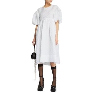 NWT Simone Rocha Pearl Embellished Neckline Puff Sleeve Midi Dress Sz. XS