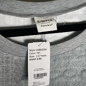 NWT Simple By Suzanne Betro Heather Gray Cable Knit Sweatshirt 2XL